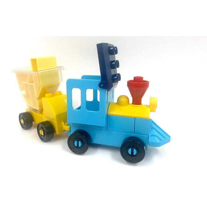 - у наборі представлений поїзд із 3-ма вантажними вагонами з прозорим кузовом;