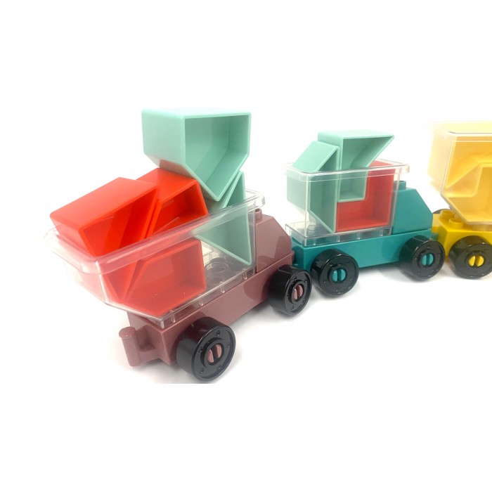 - кожен вагон має різну форму кузова, яку необхідно заповнити кольоровими елементами так, щоб вони були на одному рівні з верхом;