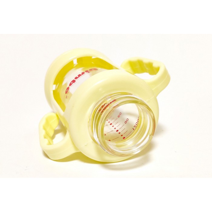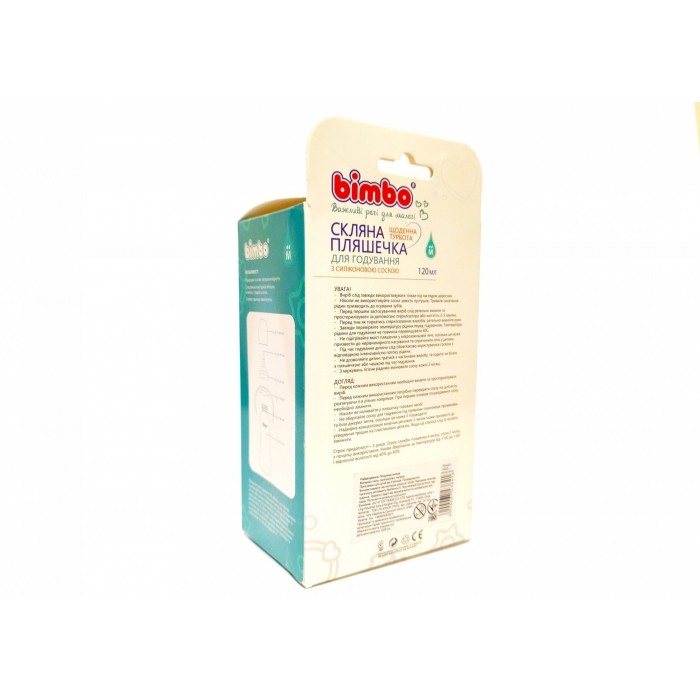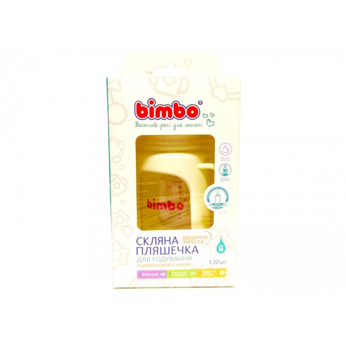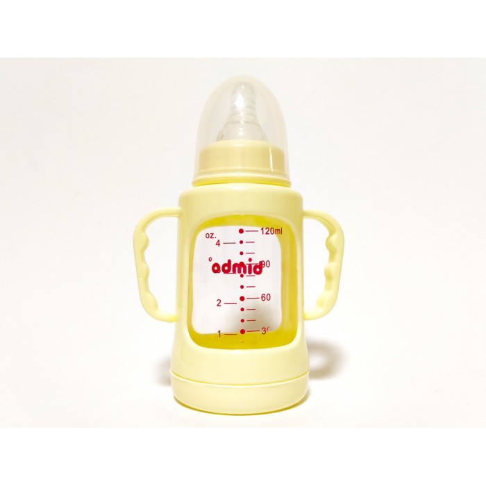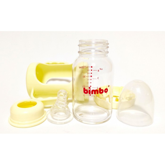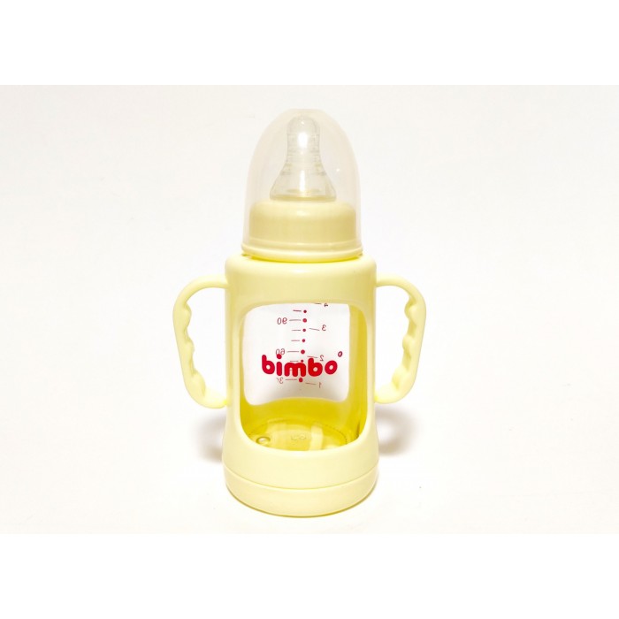 Пляшечка для годування скляна з соскою і ручками, в пластиковому захисному чохлі, 120мл, Bimbo, бежева.